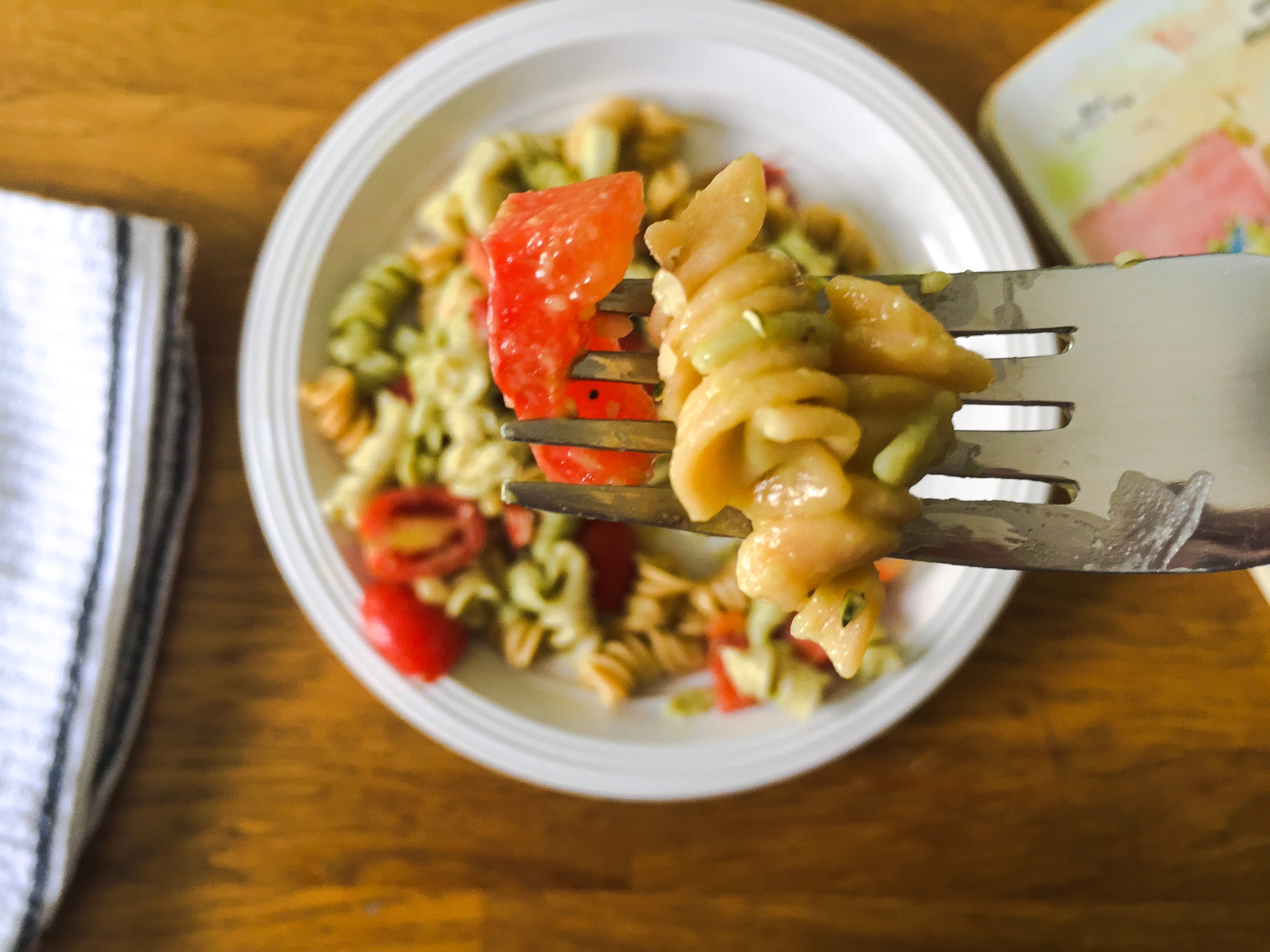 I was really craving something hearty and crunchy and thought why not just go for it and make my very first pasta salad? So here it is. As this is my first time, the recipe is super simple and slim, but it’s delicious and hit the spot. Feel free to substitute what you want and add more veggies (or even meat) if you wish.